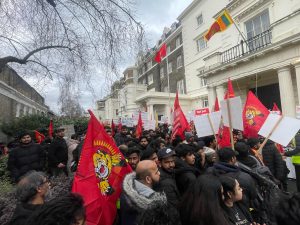 பிரித்தானியா லண்டனில் அமைந்துள்ள இலங்கை தூதரகத்திற்கு முன்பாக பிரித்தானியத் தமிழர்கள் போராட்டம் ஒன்றை நடத்தியுள்ளனர்.