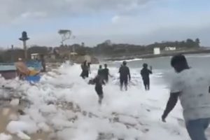 யாழ்ப்பாணம் வடமராட்சி கடற்பகுதியில் வெள்ளை நுரை கரையொதுங்கியதால் அப்பகுதி மக்கள் மத்தியில் பரபரப்பு ஏற்பட்டுள்ளது.